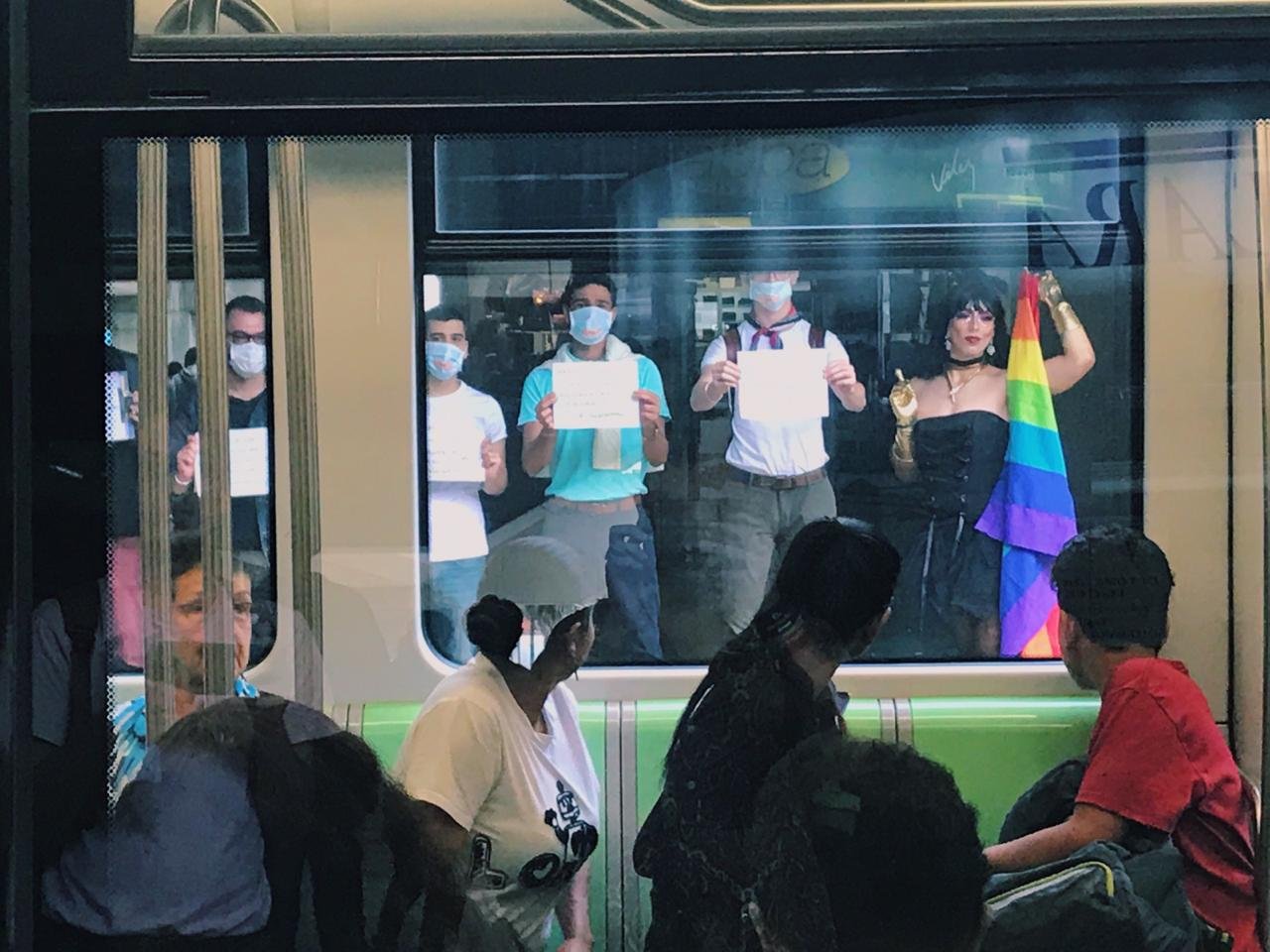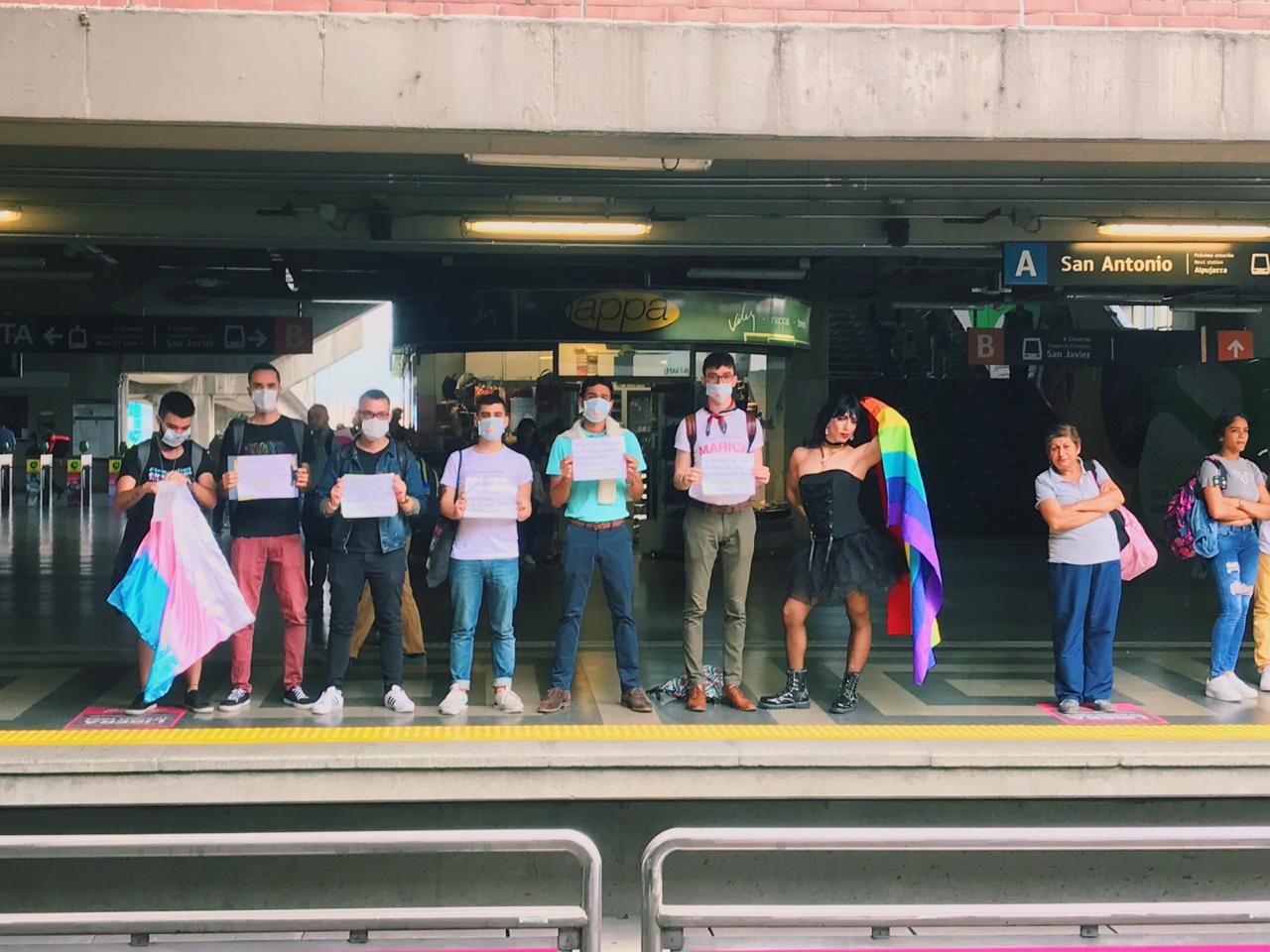De manera pacífica, en medio del silencio diferentes colectividades activistas de Medellín rompieron con la rutina del Metro, el sistema de transporte masivo que ha sido catalogado, por las mismas personas de los sectores sociales LGBTIQ de la ciudad, como el principal espacio normalizador de la homofobia, lesbofobia, bifobia y transfobia, no necesariamente desde la violencia física, sino desde diferentes instancias representativas y simbólicas.
