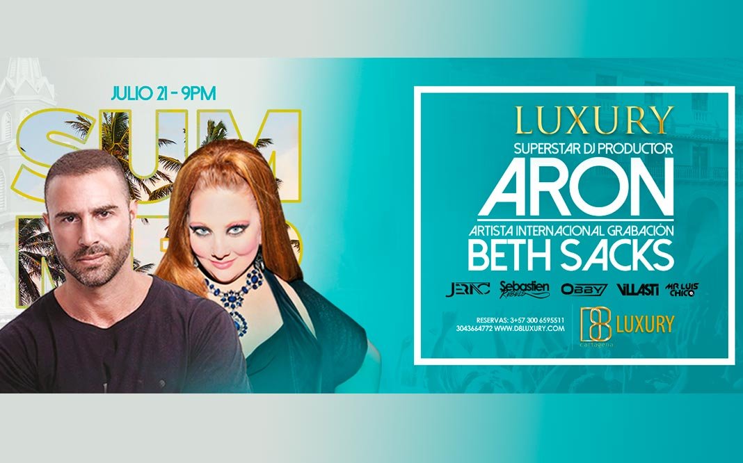 Aron Abizker y Beth Sacks visitarán Cartagena para celebrar el Summer Luxury Party el 21 de Julio en Club D8.