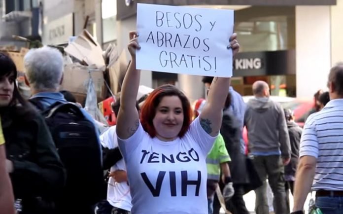 ¿Y tú qué harías si caminando por la calle te encontraras a una persona con una camiseta que diga “TENGO VIH” y un cartel ofreciendo abrazos y besos gratis? ¿La abrazarías o ignorarías la realidad de las cosas?