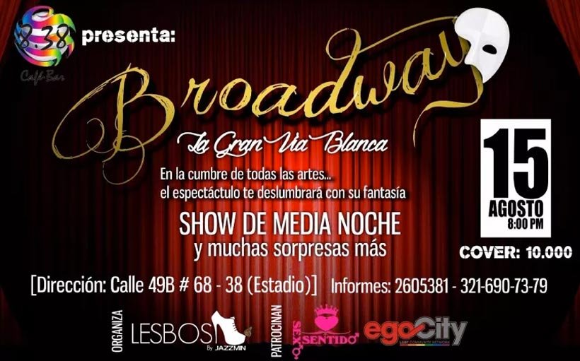 Por eso este 15 de Agosto 8.38 te presenta a «Broadway La Gran Vía Blanca«; Una experiencia temática y conceptual, donde el teatro, la danza, la decoración, y otras sorpresas te harán vivir una experiencia diferente; todo esto desarrollado por la empresa cultural Lebos By Jazzmin.