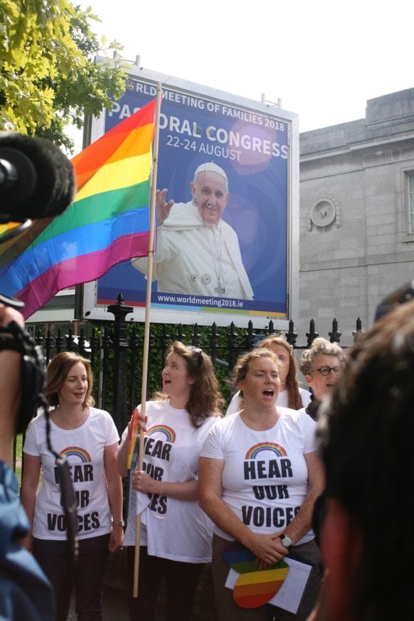 Durante el Encuentro Mundial de las Familias que se lleva a cabo en Dublín, Irlanda, se emitió un comunicado que impedía la participación de la población LGBTQ en aquel evento, por lo que un grupo de personas se reúnen para cantar en coro la canción de “We are Family”