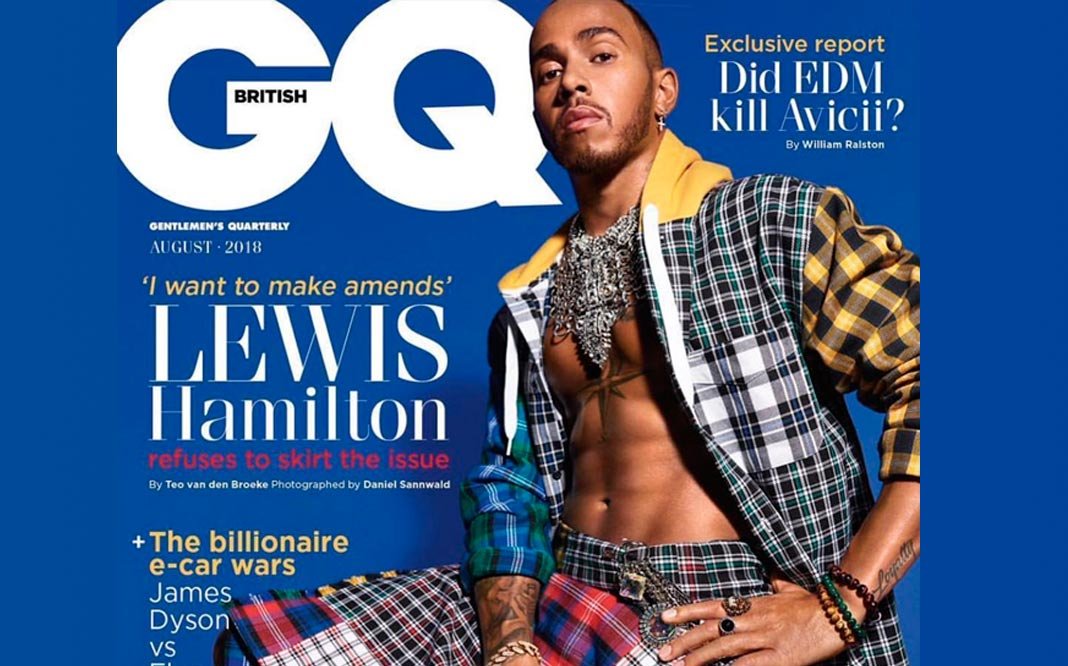 Lewis Hamilton viste una falda para la última portada de la Revista GQ, todo en reivindicación por avergonzar a su sobrino unos meses atrás.