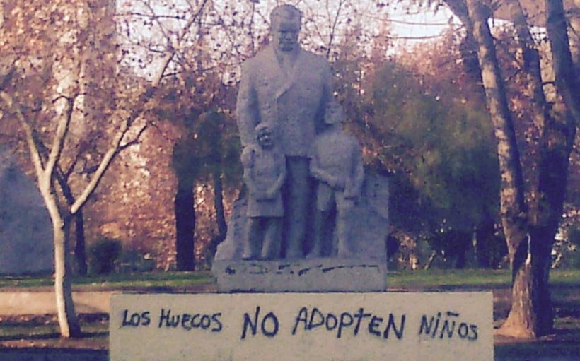La mañana del 14 de julio, las gigantes piedras que decoran el Parque Almagro en Santiago de Chile amanecieron con mensajes homofóbicos relaciones con la adopción homoparental. En spray negro se leía “Que los huecos no adopten niños” y “Muerte a los gays”, a solo unas cuadras de la sede del Movimiento de Integración y Liberación Homosexual (Movilh).