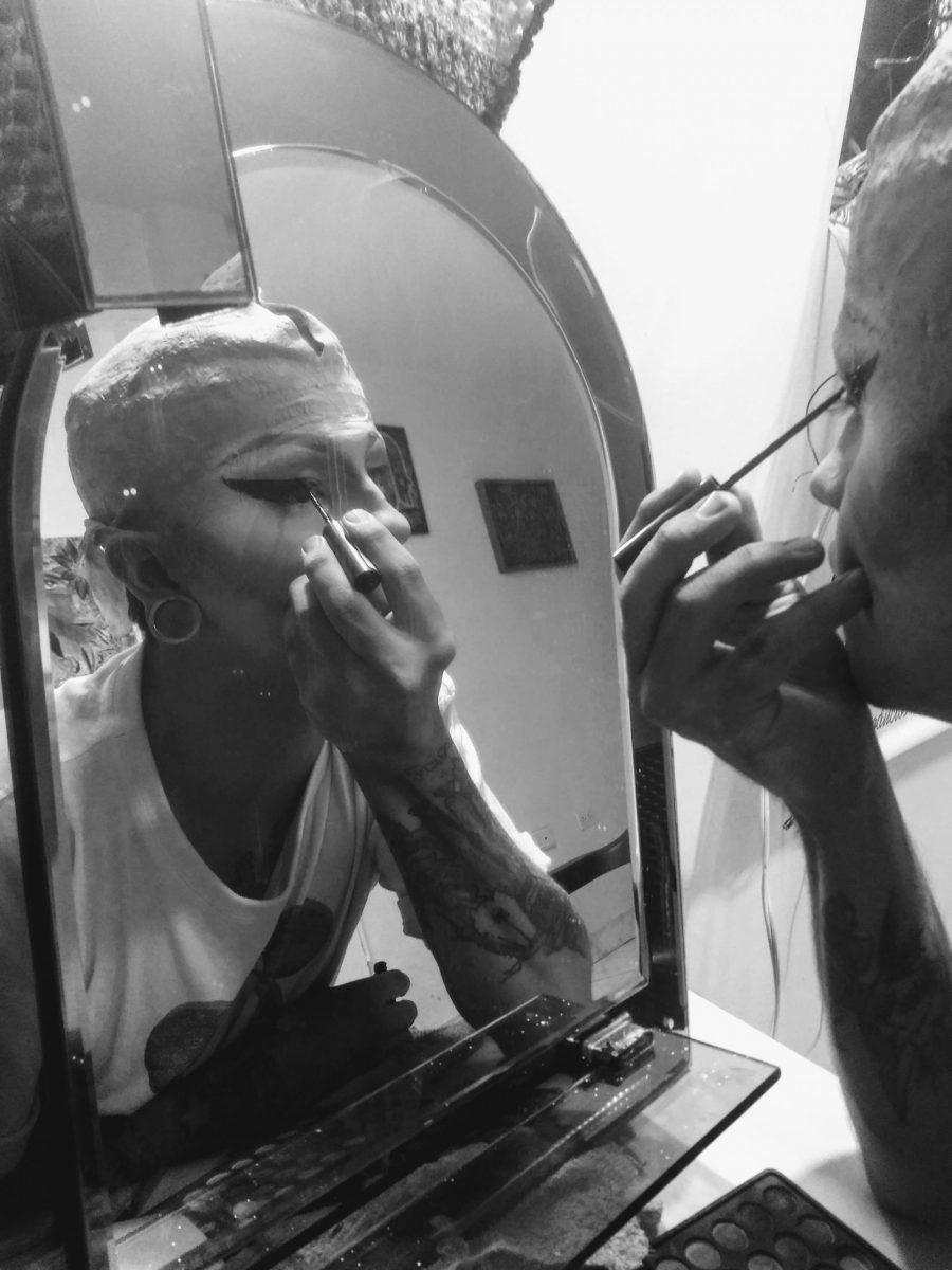 “Para mi hacer drag, es un puente que me acerca a ser y/o hacer lo que no puedo o no soy capaz en mi cotidianidad, es un acto liberador el maquillarme y el salir vestido, además puedo mostrar aquellas pesadillas que me atormentaban desde pequeña”.