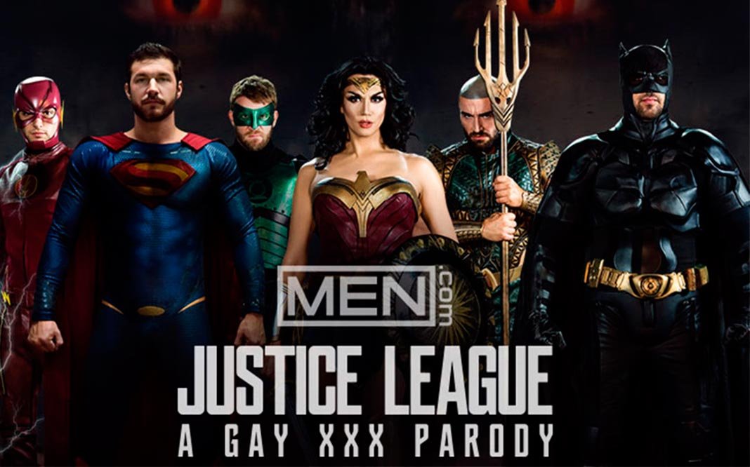 La Liga de la Justicia fue ahora parodiada por la reconocida productora de cine para adultos gay MEN.COM quienes lanzaron el 24 de noviembre su propia versión de la taquillera película de superhéroes.