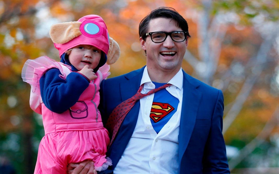 Trudeau llevaba un traje azul, una corbata roja, los lentes que identifican al famoso reportero y debajo de la camiseta azul la mítica letra S en rojo y amarillo.