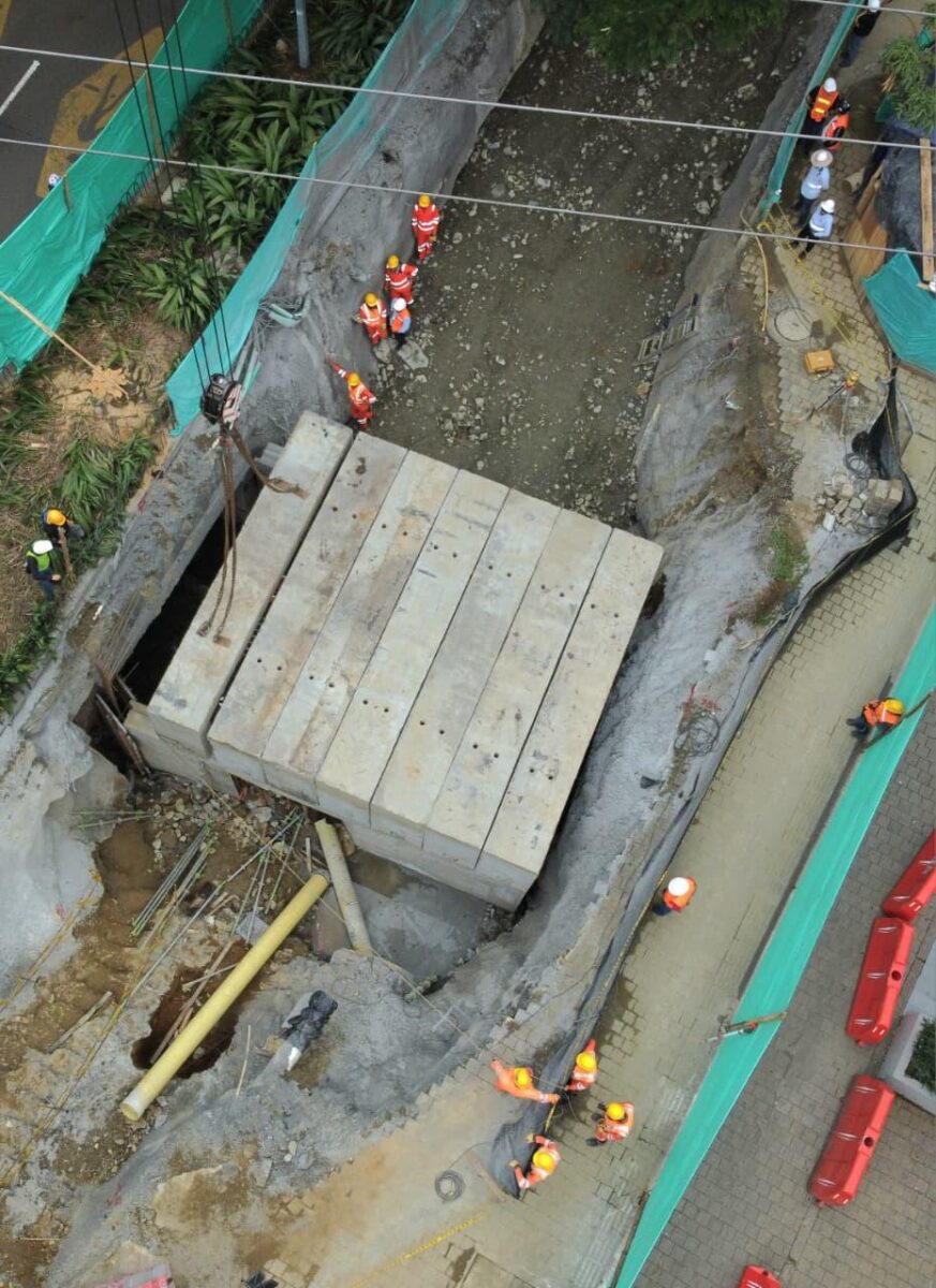 La intervención incluye excavaciones profundas, maquinaria pesada y cierres parciales de la vía, en una obra que busca reducir el riesgo de nuevos colapsos.