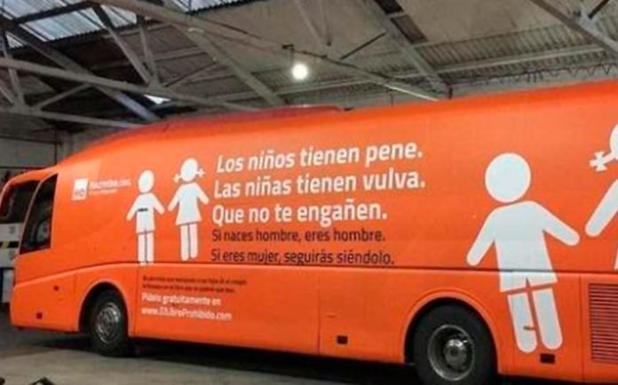 «Los niños tienen pene. Las niñas tienen vulva. Que no te engañen» es el mensaje que desde el 27 de febrero se puede ver en un autobús que circula por las calles de Madrid en lo que han denominado la ruta “de la verdad”.