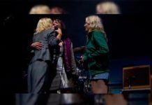 Durante la presentación de un concierto, una pareja de chicas lesbianas se toman el escenario para comprometerse públicamente.