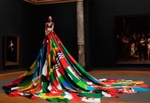 Impresionante vestido hecho con las banderas de los países donde la homosexualidad es ilegal.
