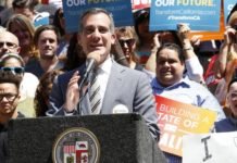 El alcalde de Los Ángeles Eric Garcetti...