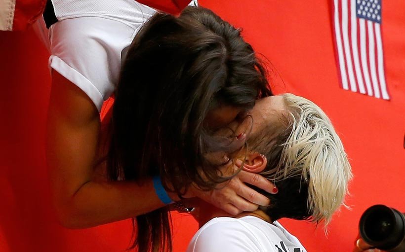 La delantera del equipo de Estados Unidos durante la Copa Mundial Femenina de Fútbol Canadá 2015, Abby Wambach, cerró con broche de oro su carrera tras ganar contra Japón, posicionando como campeona a su selección y celebrándolo besando a su esposa Sarah Huffman, quien se encontraba entre el público.